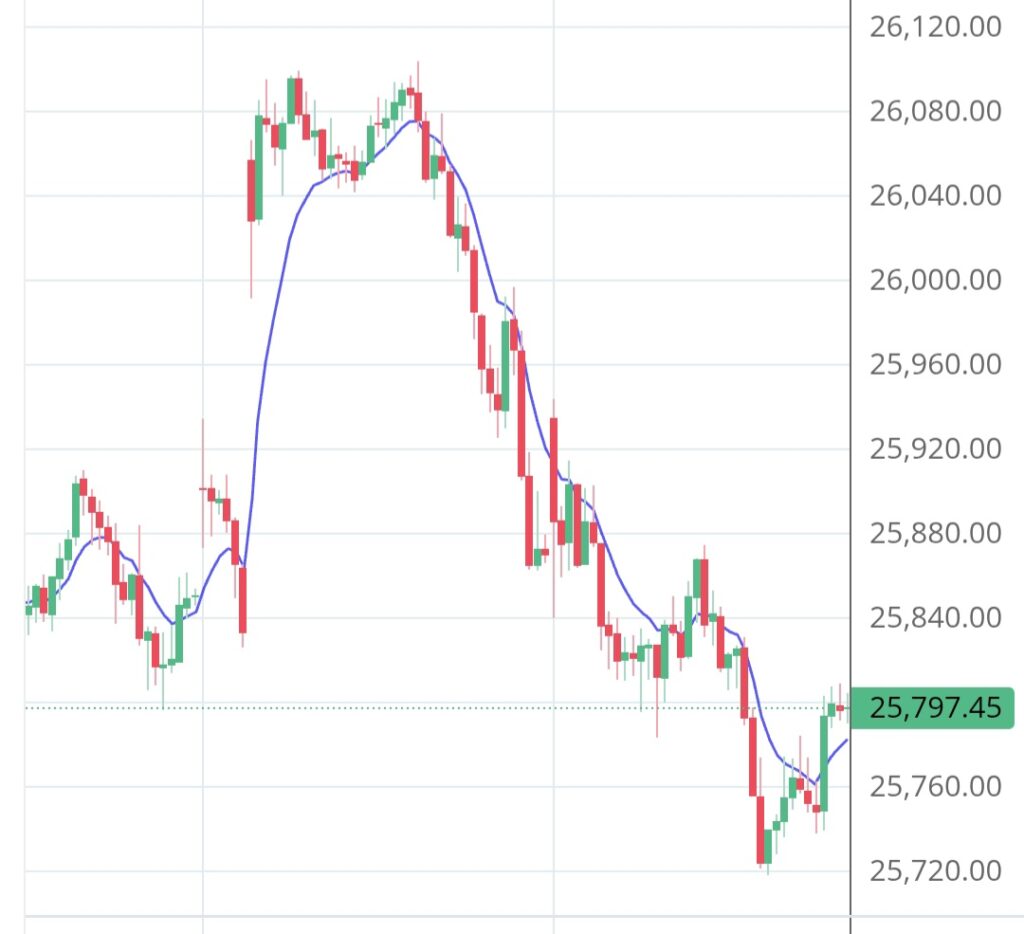 The price made two strong pushes upward near 26,080 – 26,100 (forming the two tops).Both times, it failed to break higher — showing seller strength.Once the neckline (around 25,920) broke, the downtrend accelerated sharply.You can see a clear fall to 25,720, confirming the bearish reversal.